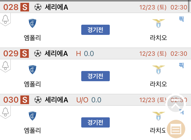 라치오가 연패로 썩 좋은 분위기는 아니지만 엠폴리의 수비라인이 완전히 무너진점 라치오가 중원에서의 실수가 나오더라도 충분히 막을 수 있을 만큼 전력차가 너무나 큽니다 라치오가 반등할 가능성이 너무나 큽니다