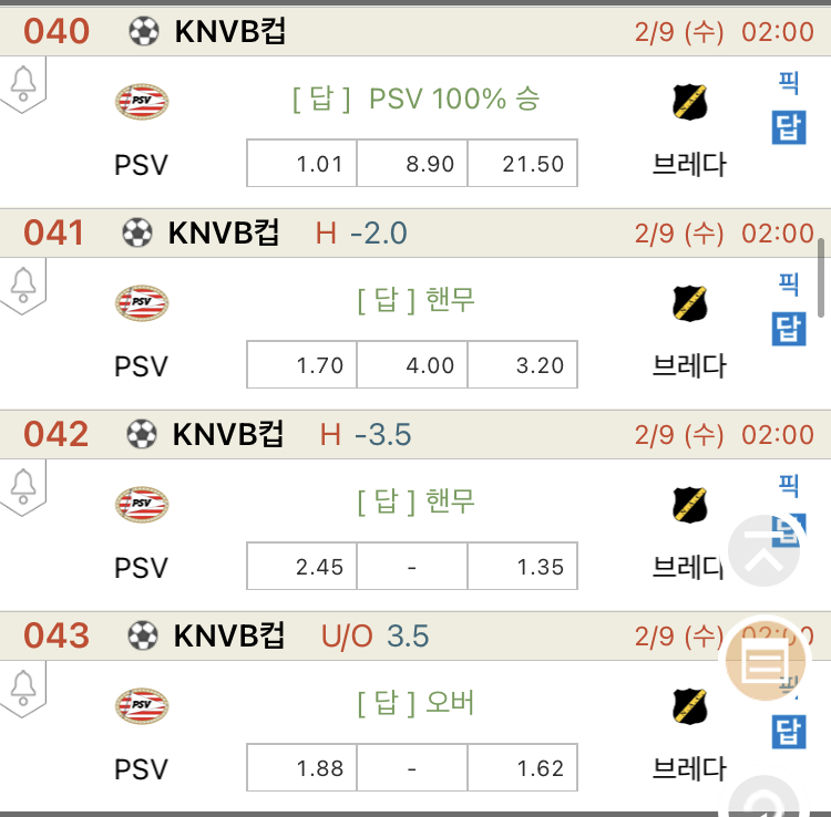 추천픽은 아인트호벤 승 드립니다