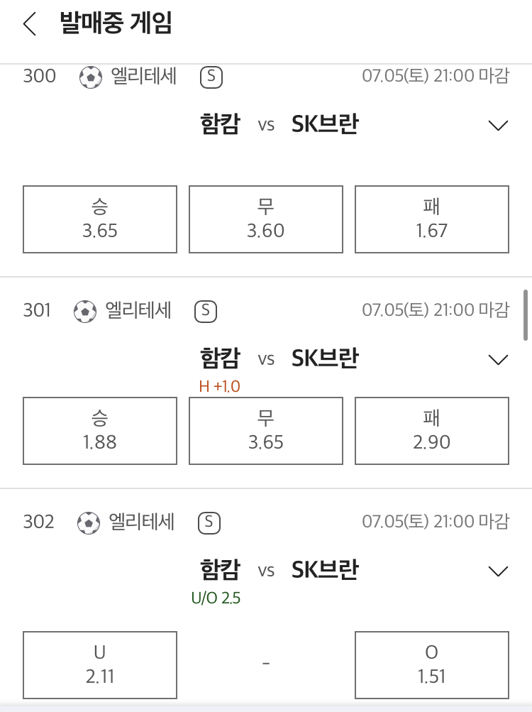 1. 함캄vsSK브란