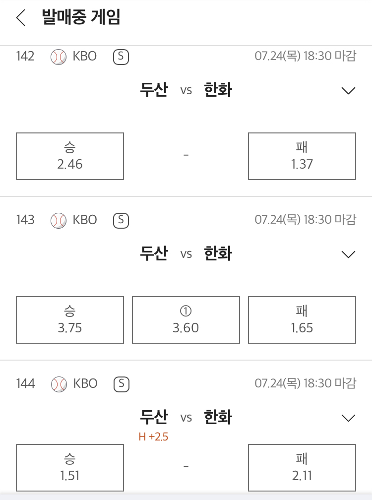 1. 두산vs한화