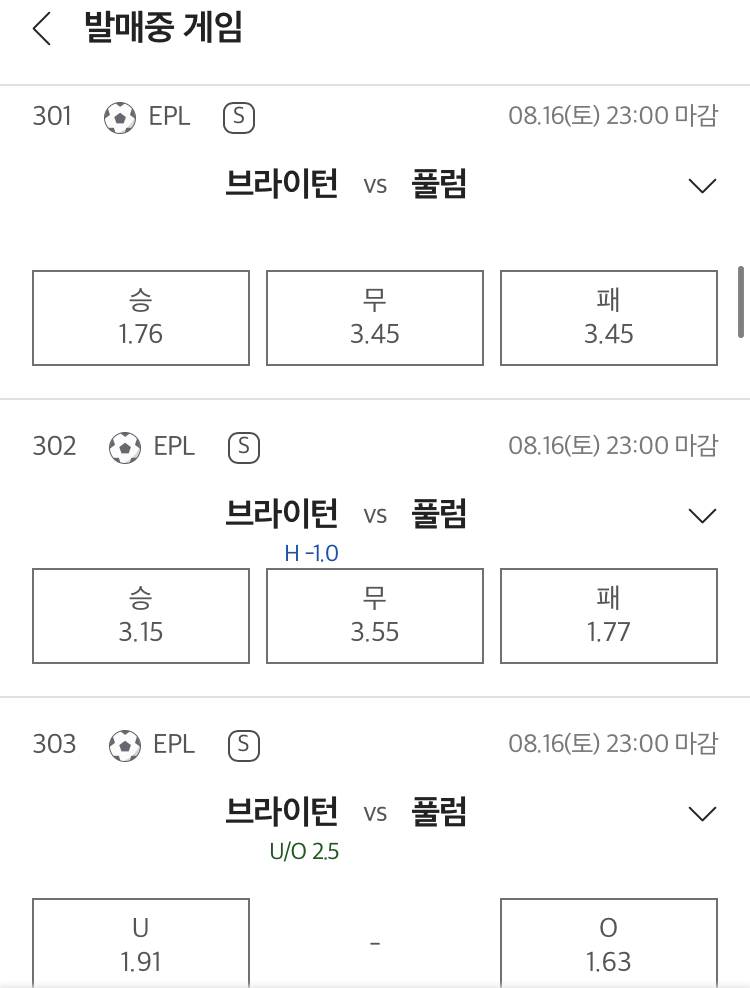 추천픽 브라이튼 승 및 2.5오버 드립니다