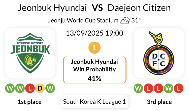 전북 현대는 K리그1 대전 시티즌과의 마지막 22경기 중 19경기에서 무패 행진을 이어가고 있습니다.