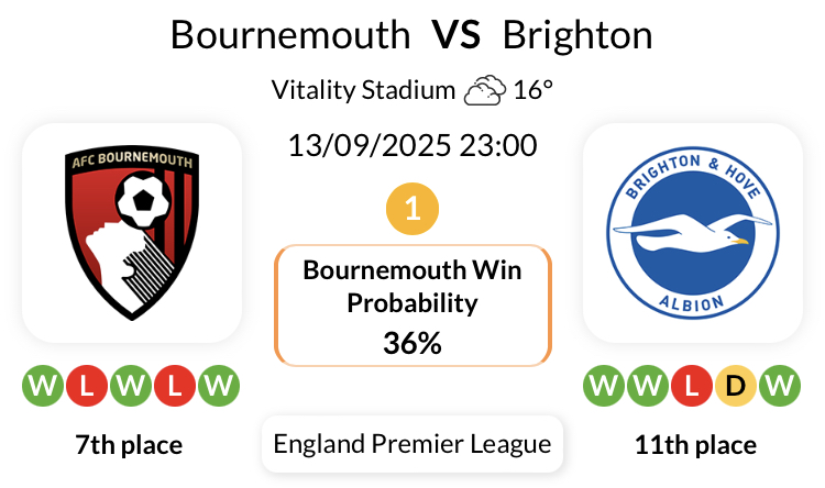 본머스는 브라이튼과의 모든 대회에서 지난 6경기 중 단 1승만을 달성했습니다