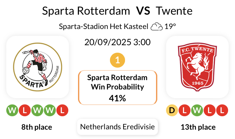스파르타 로테르담은 에레디비시에서 열린 트벤테와의 가장 최근 13번의 맞대결에서 단 1승만을 거두었습니다