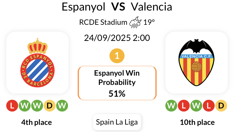 에스파뇰은 라리가 발렌시아와의 지난 12번의 홈 경기에서 전반전 무패 행진을 이어가고 있습니다