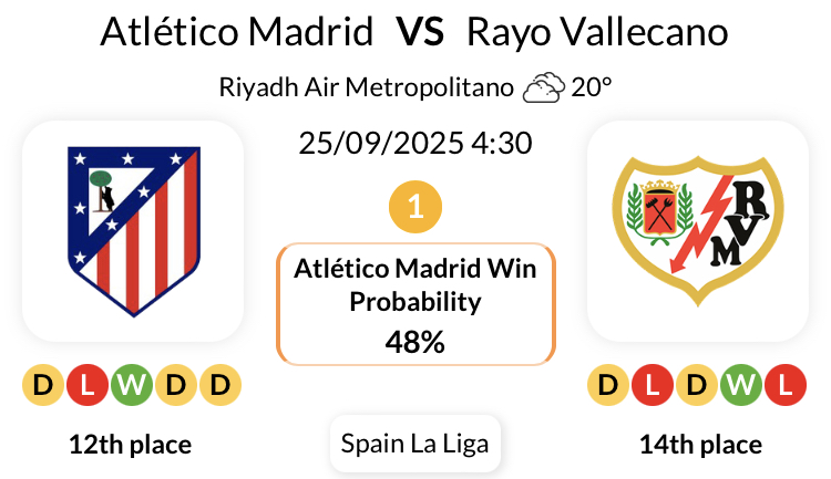 아틀레티코 마드리드는 라요 발레카노와의 지난 18경기에서 모든 대회에서 패배한 적이 없습니다