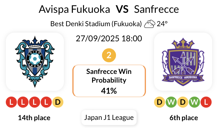 산프레체는 J1리그 아비스파 후쿠오카와의 지난 8경기에서 모두 무패 행진을 이어가고 있습니다