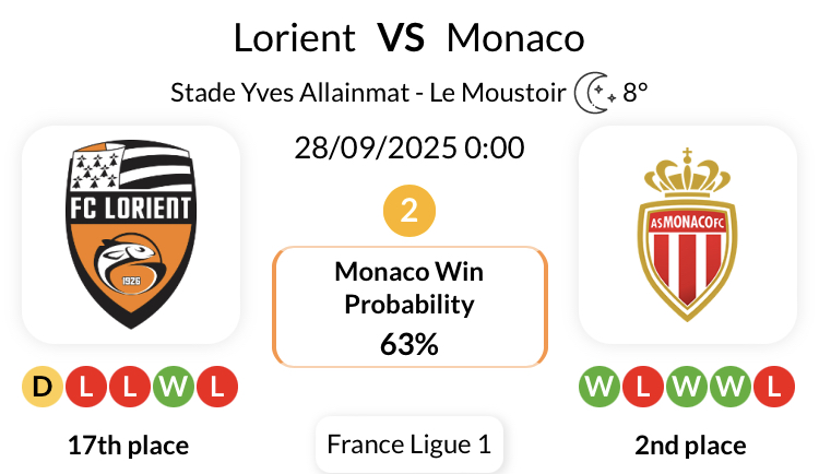 모나코는 리그 1에서 로리앙과의 지난 7번의 맞대결 중 단 1번만 승리했습니다