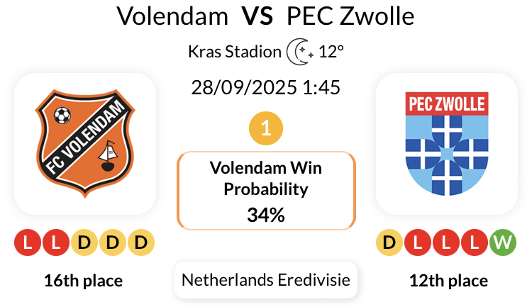 볼렌담은 에레디비시에서 열린 경기에서 평균 1.83골을 허용했습니다