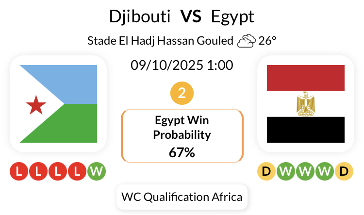 지부티의 폼은 좋지 않았습니다. 팀이 지난 26경기 중 단 2경기만 승리했기 때문입니다 (모든 대회에서)