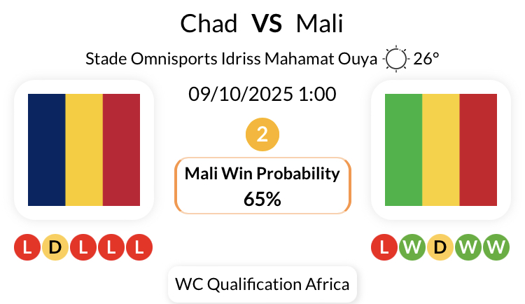 차드의 지난 6번의 홈 모든 대회 경기에서 2.5골 미만의 득점이 있었습니다