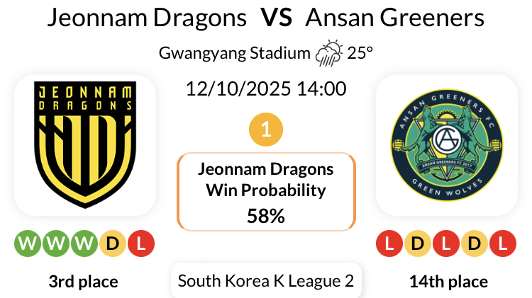 전남 드래곤즈의 가장 최근 안산 그리너스와의 7경기 연속 무패 기록 (K리그 2)