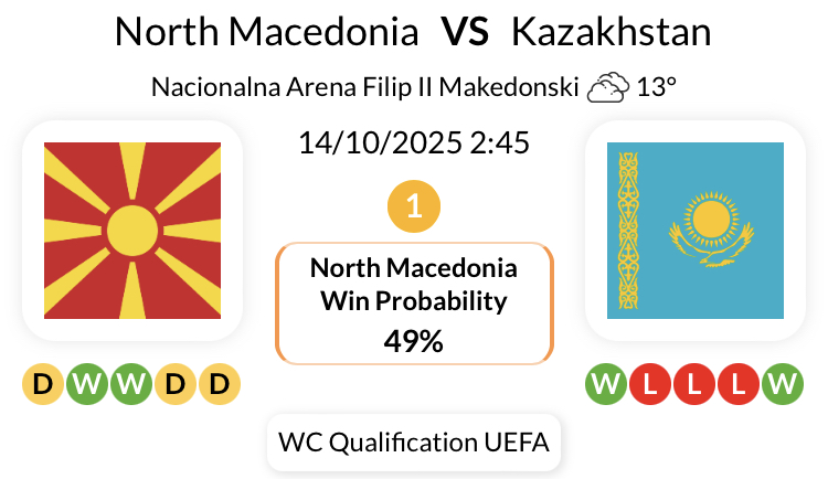 북마케도니아는 지난 13번의 모든 대회 경기에서 무패 행진을 이어가고 있습니다