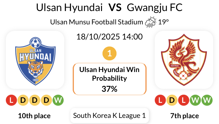 울산 현대는 지난 11번의 홈 리그 경기 중 9번에서 광주 FC를 상대로 무패를 기록했습니다.