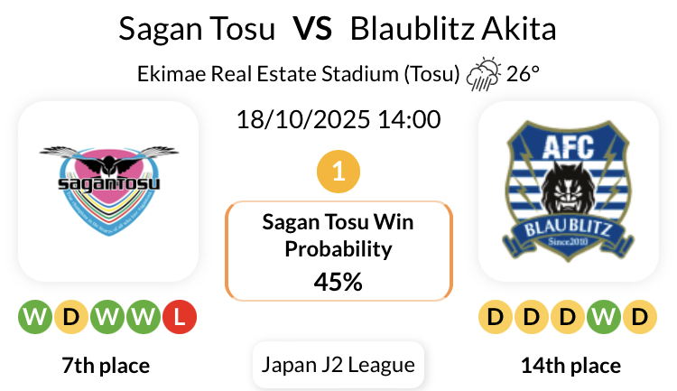 블라우블리츠 아키타는 가장 최근 10경기 중 9경기(J2리그)에서 무패 행진을 이어가고 있습니다