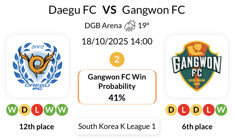 강원 FC 팀은 K리그1에서 대구 FC와의 원정 경기 11회 만에 단 1승만을 달성했습니다
