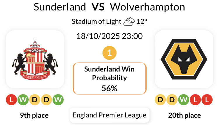 선덜랜드는 최근 울버햄튼과 치른 6번의 홈 경기 중 5번의 경기에서 모든 대회에서 패배한 적이 없습니다.