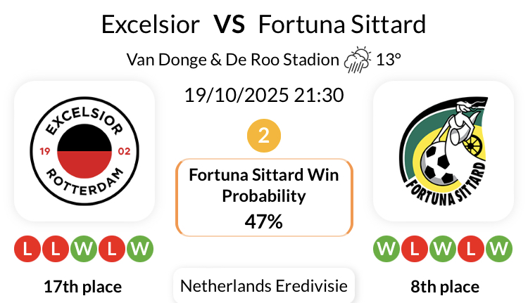 포르투나 시타드는 지난 리그 6경기 중 5경기에서 엑셀시어를 상대로 무패를 기록했습니다