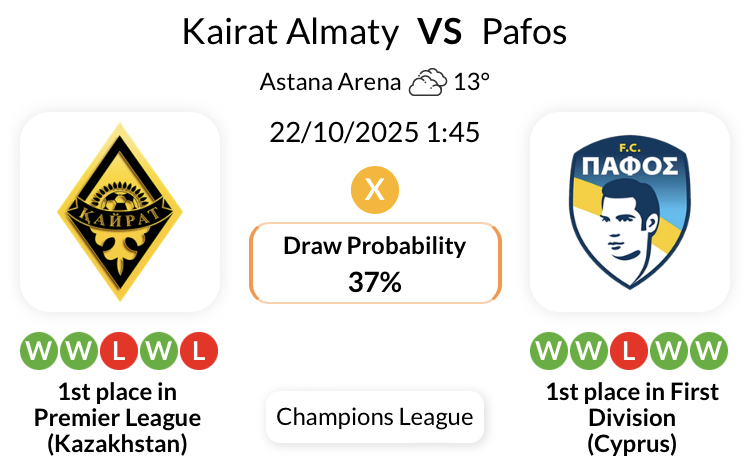 카이랏 알마티의 최근 성적은 실망스러웠습니다. 가장 최근 챔피언스리그 6번의 맞대결 중 단 1번만 승리했기 때문입니다