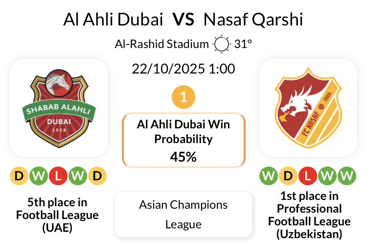 알 아흘리 두바이는 리그 경기에서 평균 0.50골을 허용하고 있습니다