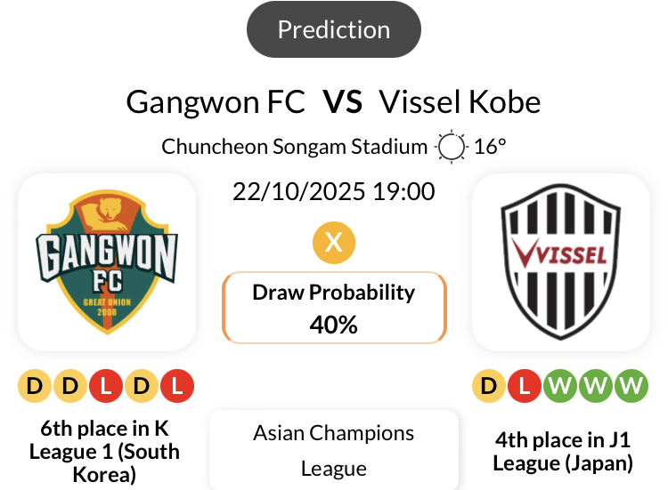 비셄고베는 2025 시즌 J1리그에서 경기당 평균 득점 약 1.26골, 평균 실점 약 0.82골로 꽤 안정적인 수비를 보여주고 있습니다