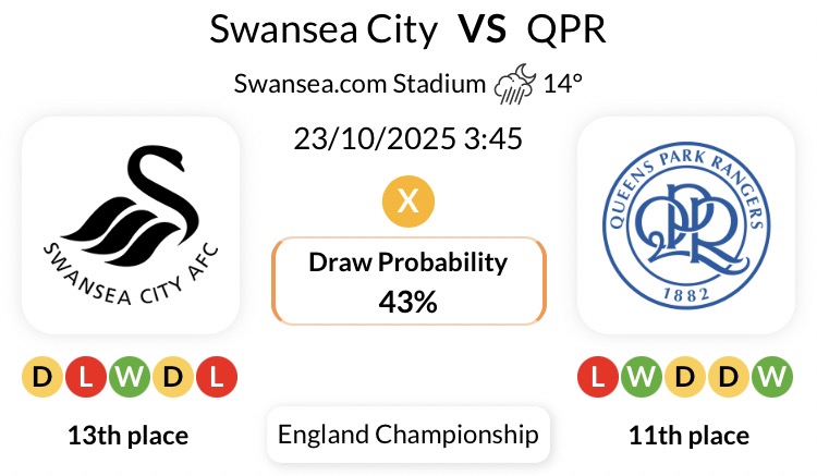 스완지 시티는 모든 대회에서 QPR과의 가장 최근 홈 경기 13경기에서 모두 HT에서 무패를 기록했습니다