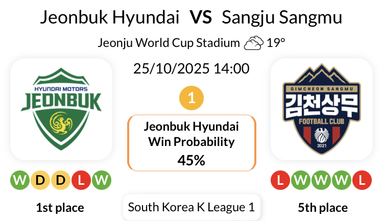 전북 현대는 K리그1 상주 상무와의 지난 4번의 맞대결에서 2.5골 이상을 기록했습니다.
