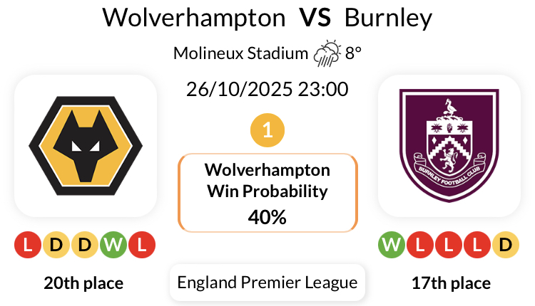 울버햄튼은 모든 대회에서 가장 최근 7번의 홈 충돌 중 6번의 번리전에서 패배한 적이 없습니다.