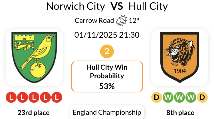 헐 시티는 노리치 시티와의 경기에서 연속으로 원정 4패를 당했습니다 (모든 대회)