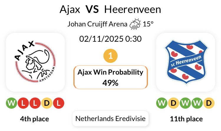 아약스는 에레디비시에서 열린 헤이렌빈과의 가장 최근 홈 경기 6경기에서 전반전과 풀타임 모두 승리를 거두었습니다