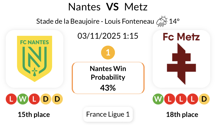 낭트는 리그 1에서 메츠와의 지난 9번의 맞대결 중 단 1번만 승리했습니다
