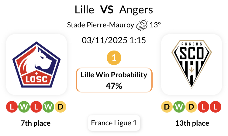 릴은 리그 1에서 앙제스를 상대로 한 지난 8번의 홈 경기에서 각각 최소 한 골을 기록했습니다