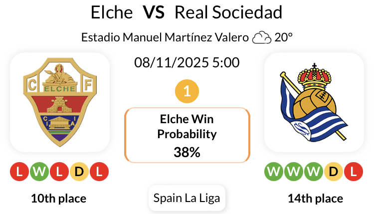 엘체는 모든 대회에서 레알 소시에다드와의 마지막 6경기에서 패배했습니다