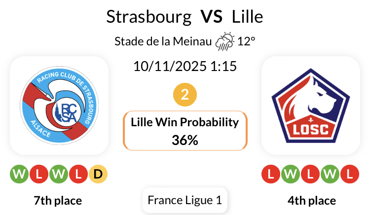 릴은 지난 15번의 리그 경기 중 13번의 경기에서 스트라스부르를 상대로 무패를 기록했습니다
