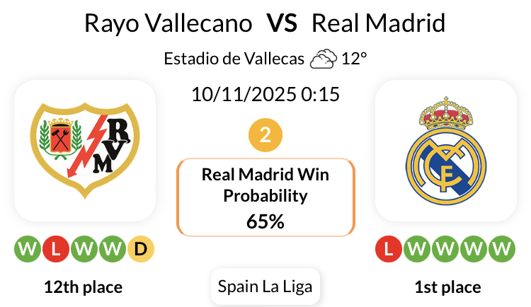 레알 마드리드는 모든 대회에서 라요 발레카노와의 마지막 원정 경기 4경기에서 전반전 무승부를 기록했습니다