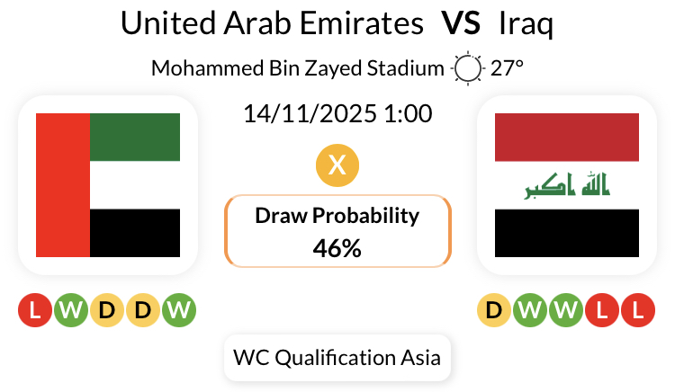 아랍에미리트는 WC 예선 아시아에서 열린 지난 9번의 홈 경기 중 8번의 경기에서 패배한 적이 없습니다
