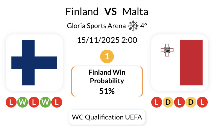이전 맞대결에서 핀란드는 몰타를 상대로 승리를 거두었습니다.
