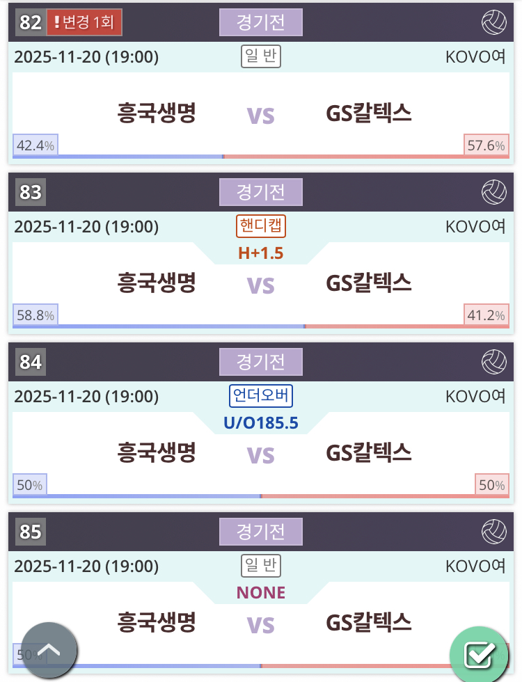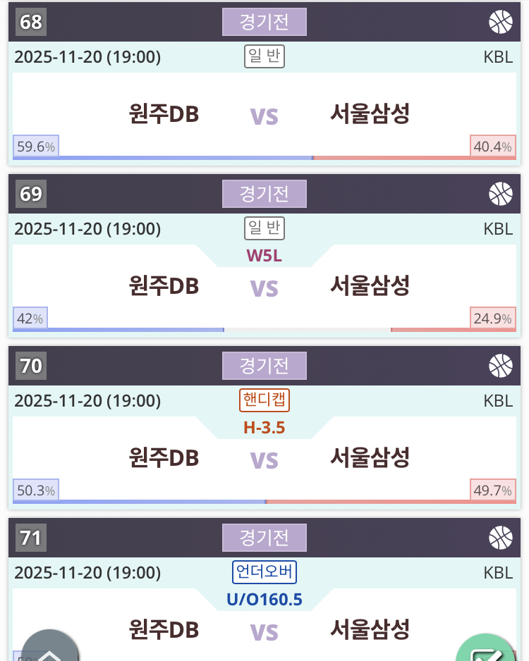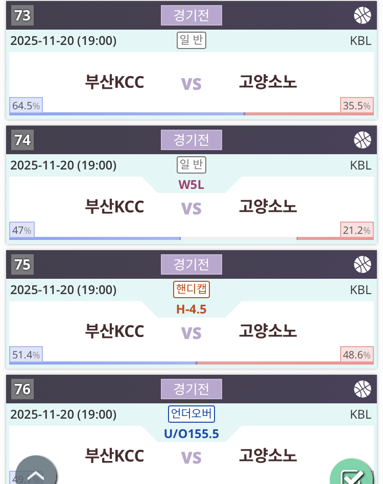 #부산KCC 대 고양소노, #원주 DB 대 서울삼성, #현대캐피탈 대 한국전력, #흥국생명 대 GS칼텍스, #애들레이드 대 멜버른