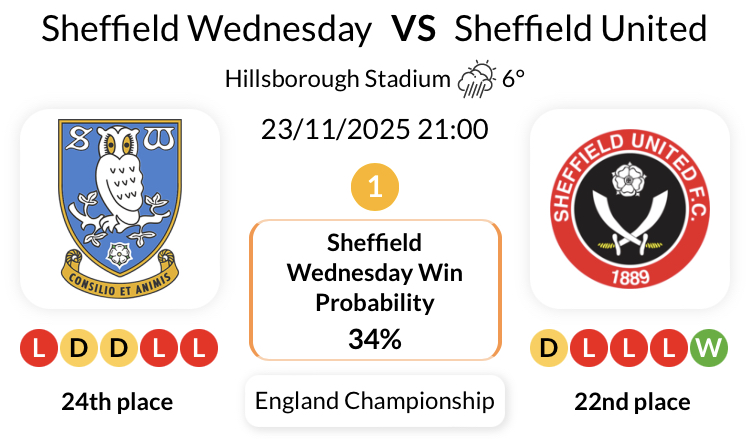 셰필드 웬즈데이는 셰필드 유나이티드와의 가장 최근 5번의 챔피언십 경기에서 한 골도 넣지 못했습니다