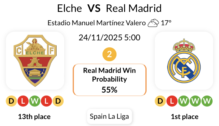 레알 마드리드는 엘체와의 지난 11경기에서 모든 대회에서 패배한 적이 없습니다