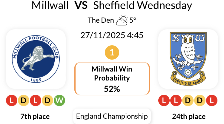 밀월은 셰필드 웬즈데이와의 가장 최근 9번의 맞대결 중 8번(모든 대회)에서 무패를 기록했습니다