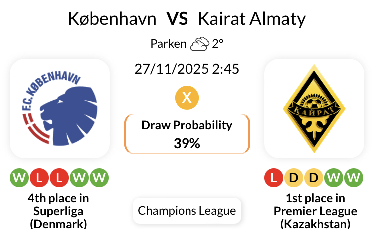 코벤하운의 최근 성적은 실망스러웠습니다. 가장 최근 챔피언스리그 경기 6번 중 단 1번만 승리했기 때문입니다