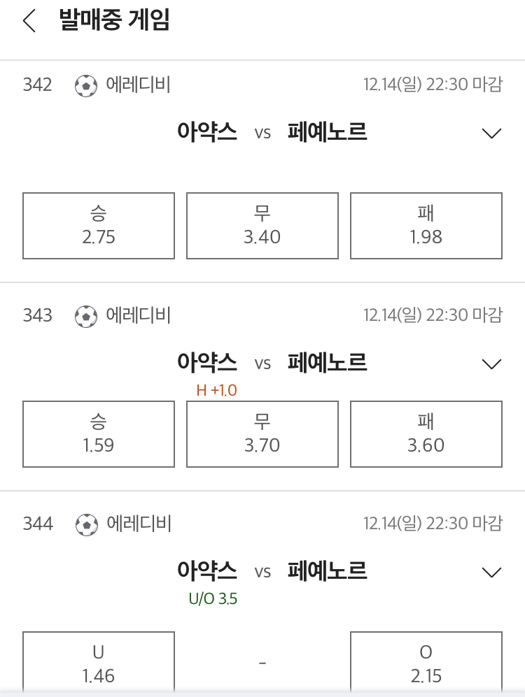 승/무/패에서는 페예노르트 승이 합리적 선택입니다.