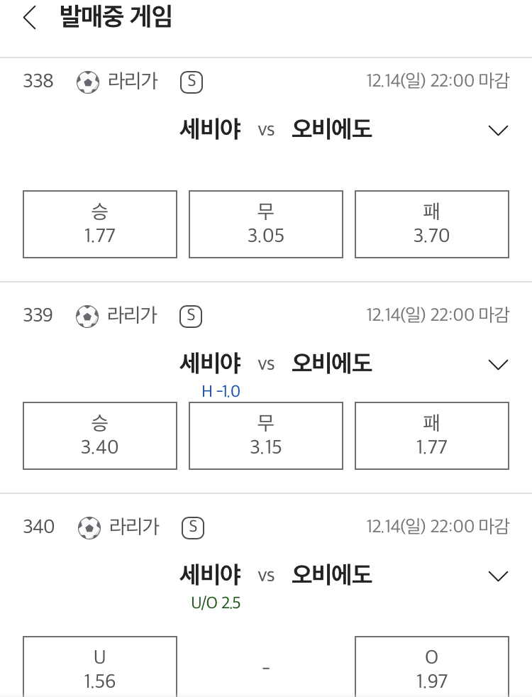 승/무/패 기준에서는 세비야 승이 기본값입니다.