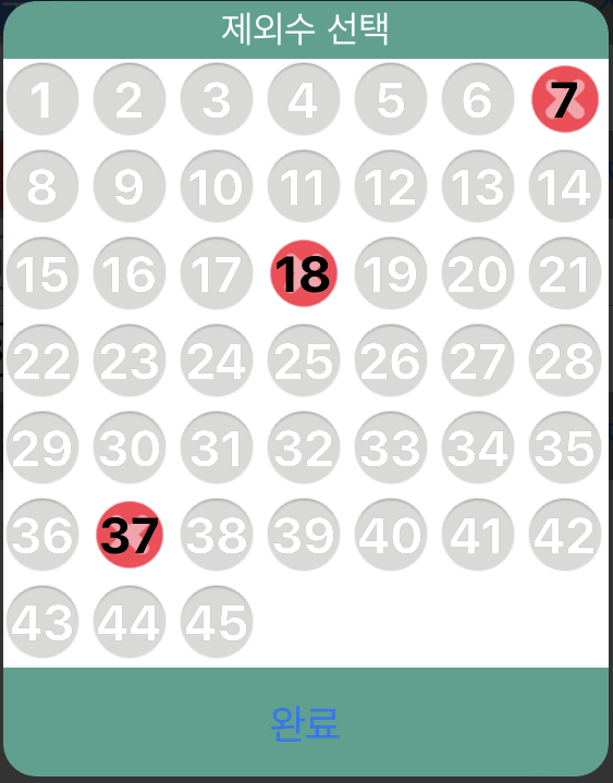 제외수 3수(7, 18, 37)를 잘 반영한 조합입니다