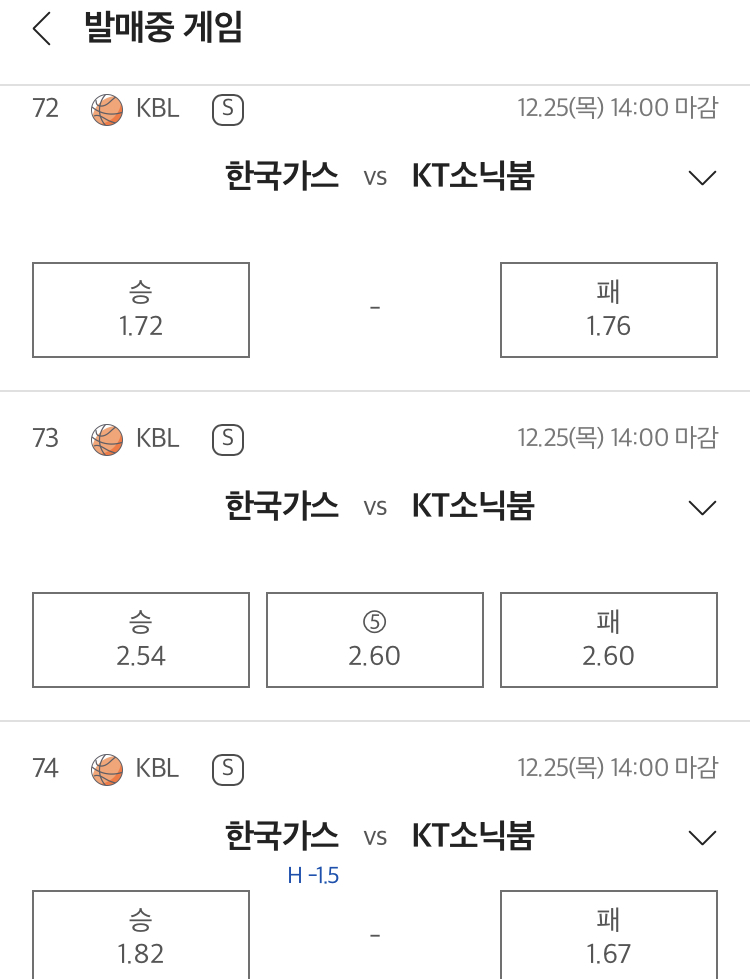 핸디: KT +1.5 안정적