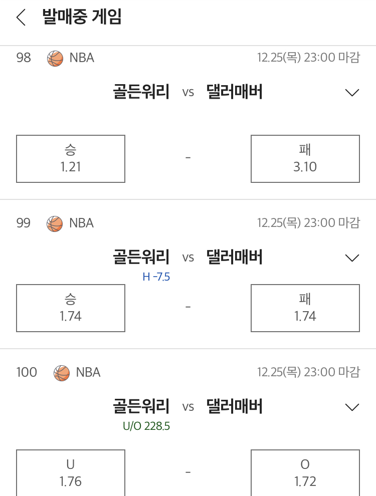 정배가 명확하며, 골든스테이트 우세 흐름입니다. 핸디캡도 적정선으로 형성되었습니다.