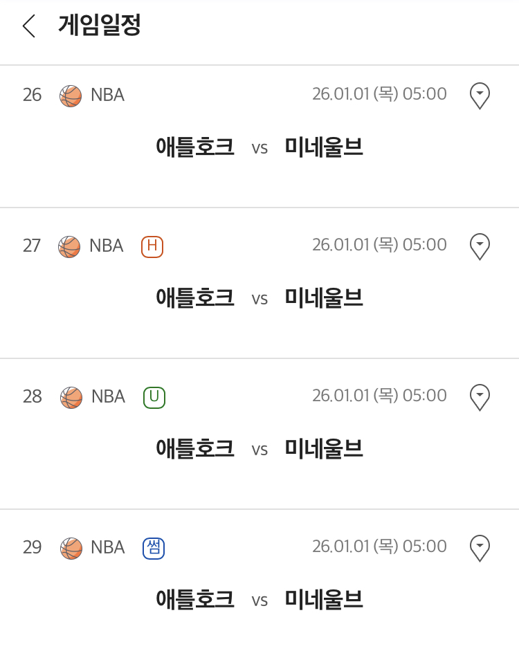 #샬럿 대 골든스테이트, #애틀랜타 대 미네소타, #인디애나 대 올랜도, #클리블랜드 대 피닉스, #시카고 대 뉴올리언즈