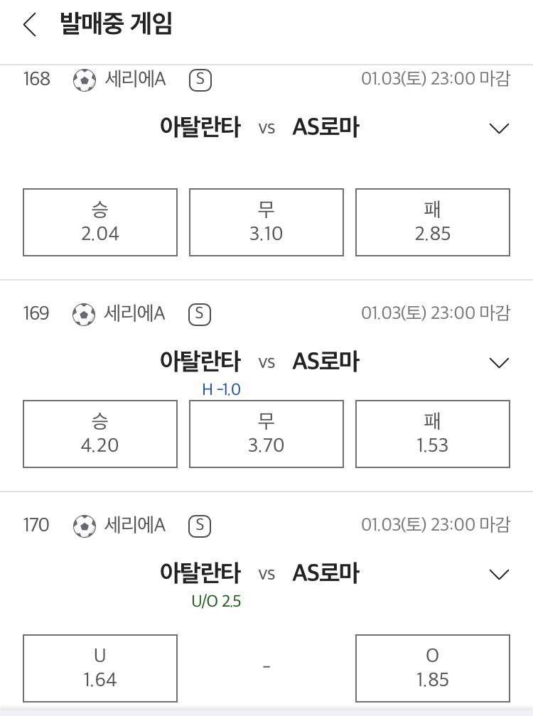 아탈란타 승이 근소 정배입니다.