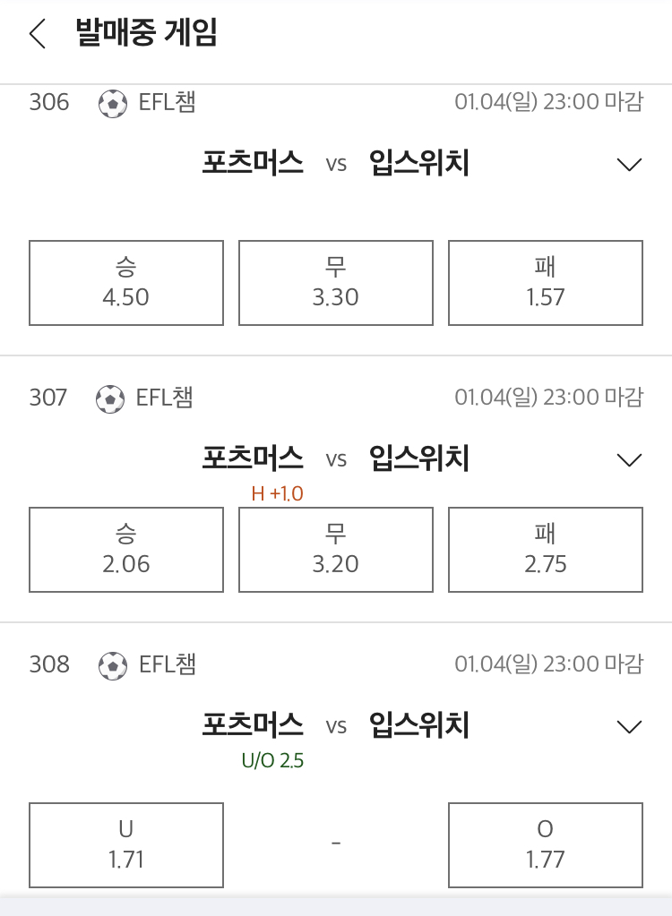 핸디캡 +1.0에서도 배당이 크게 차이나지 않는 점은 입스위치가 최소 1골 차 이상 승리할 가능성을 높게 본 흐름입니다.
